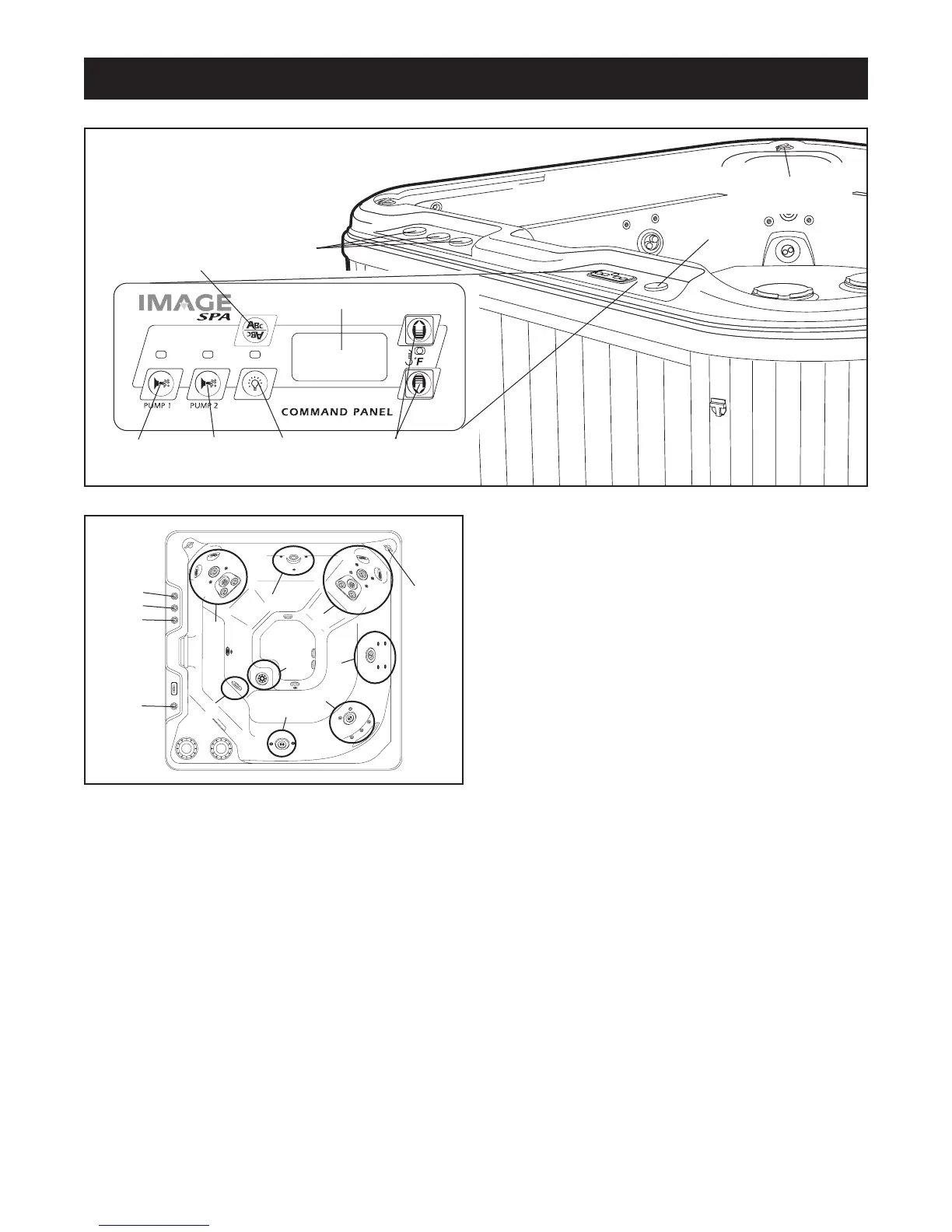 Pump Button 2: Turns the spa jets labeled 1 and 2