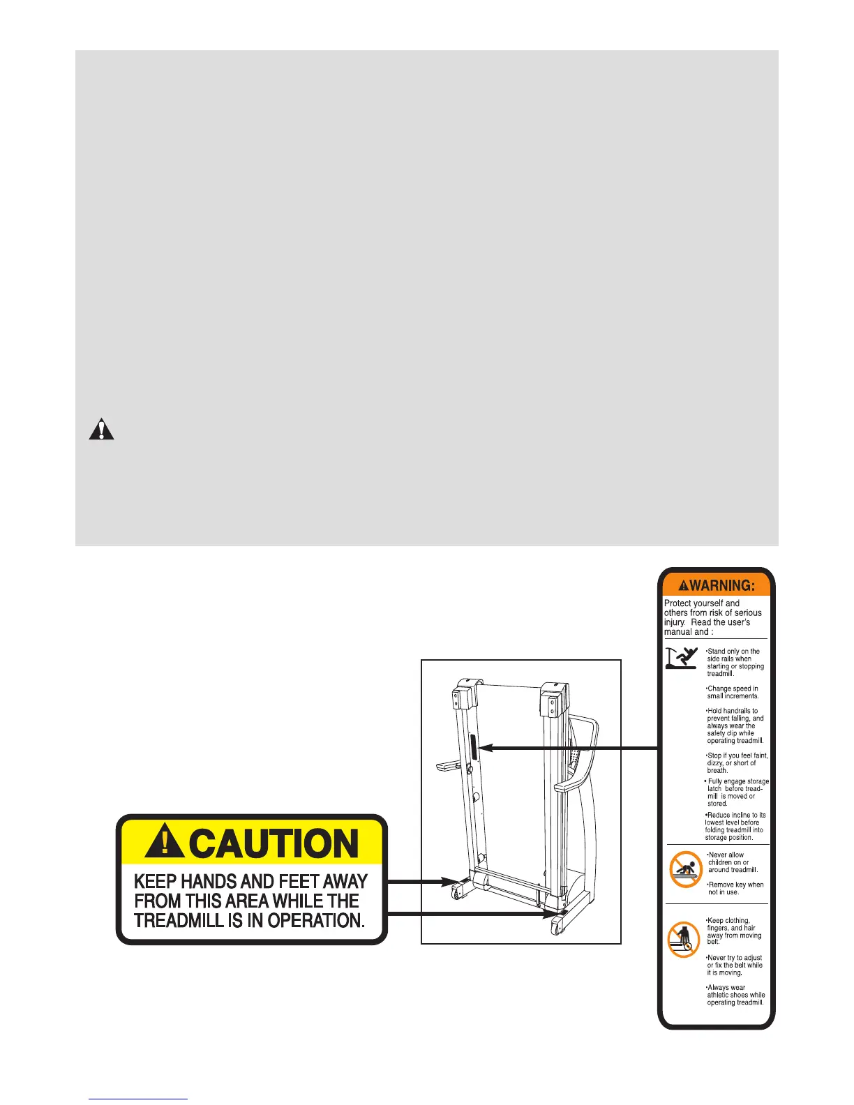 The decals shown have been placed on your treadmill. If a decal is missing, or if