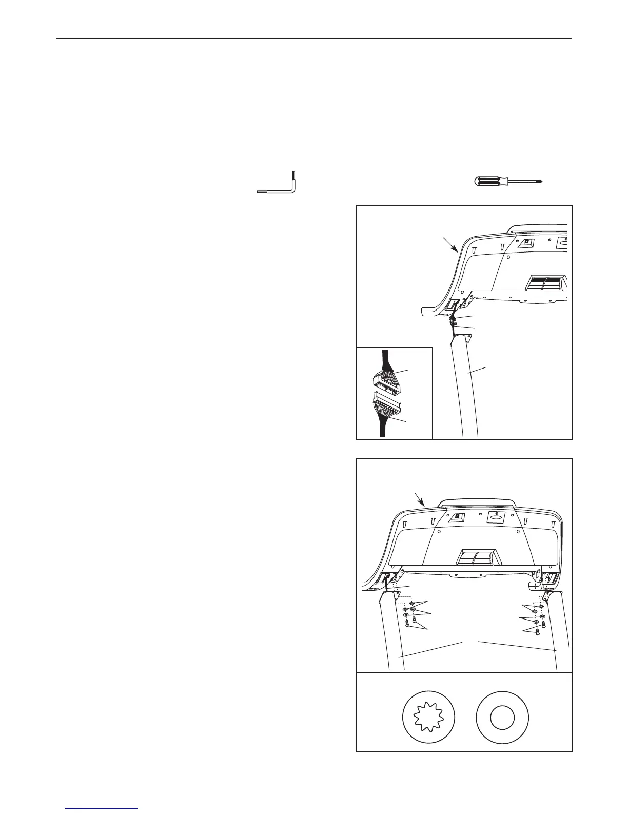 Assembly requires two persons. Place the treadmill in a cleared area and remove all packing materials. Do not