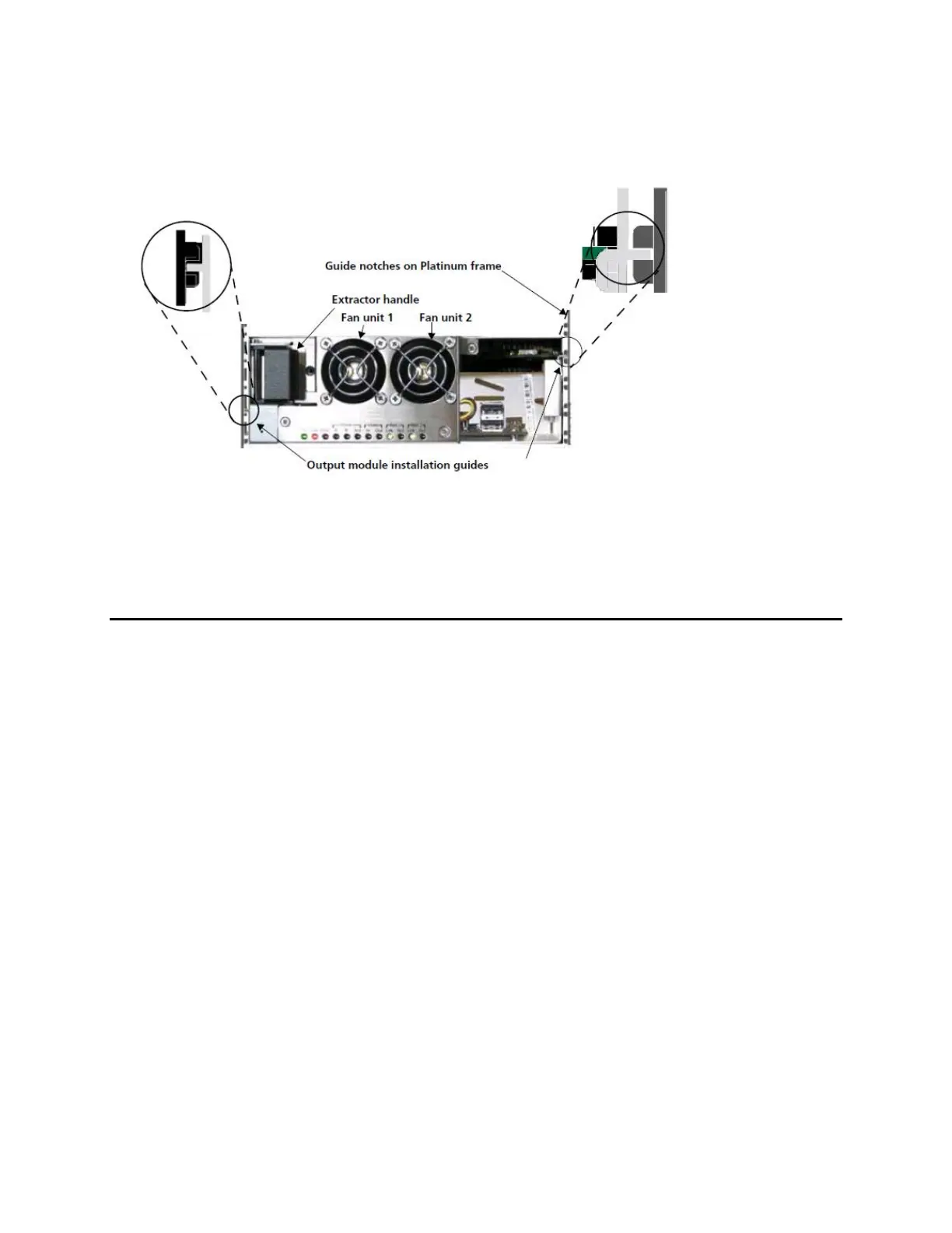 4. Pull and hold the back module’s extractor handle, and then slide the back module assembly into the