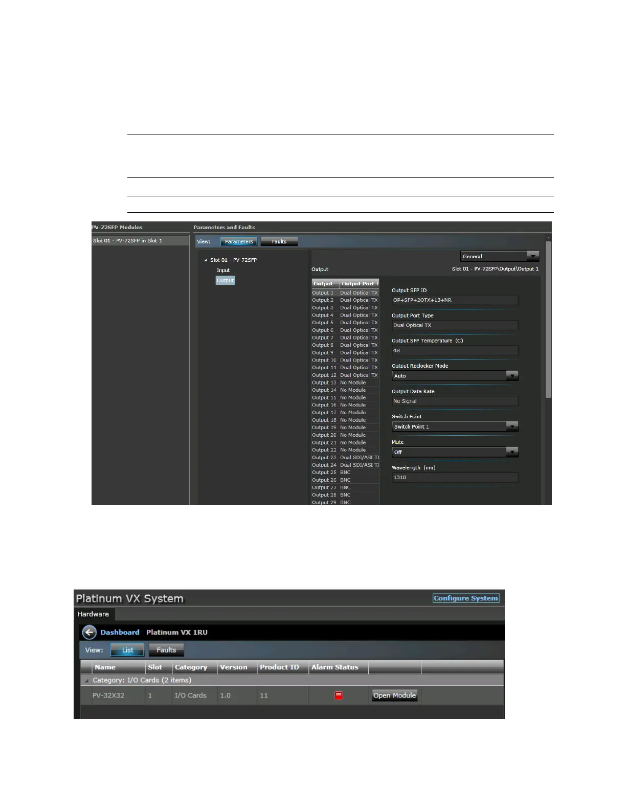 Module Output Parameters (on page 108)). Also see Supported SFP Specifications (on page