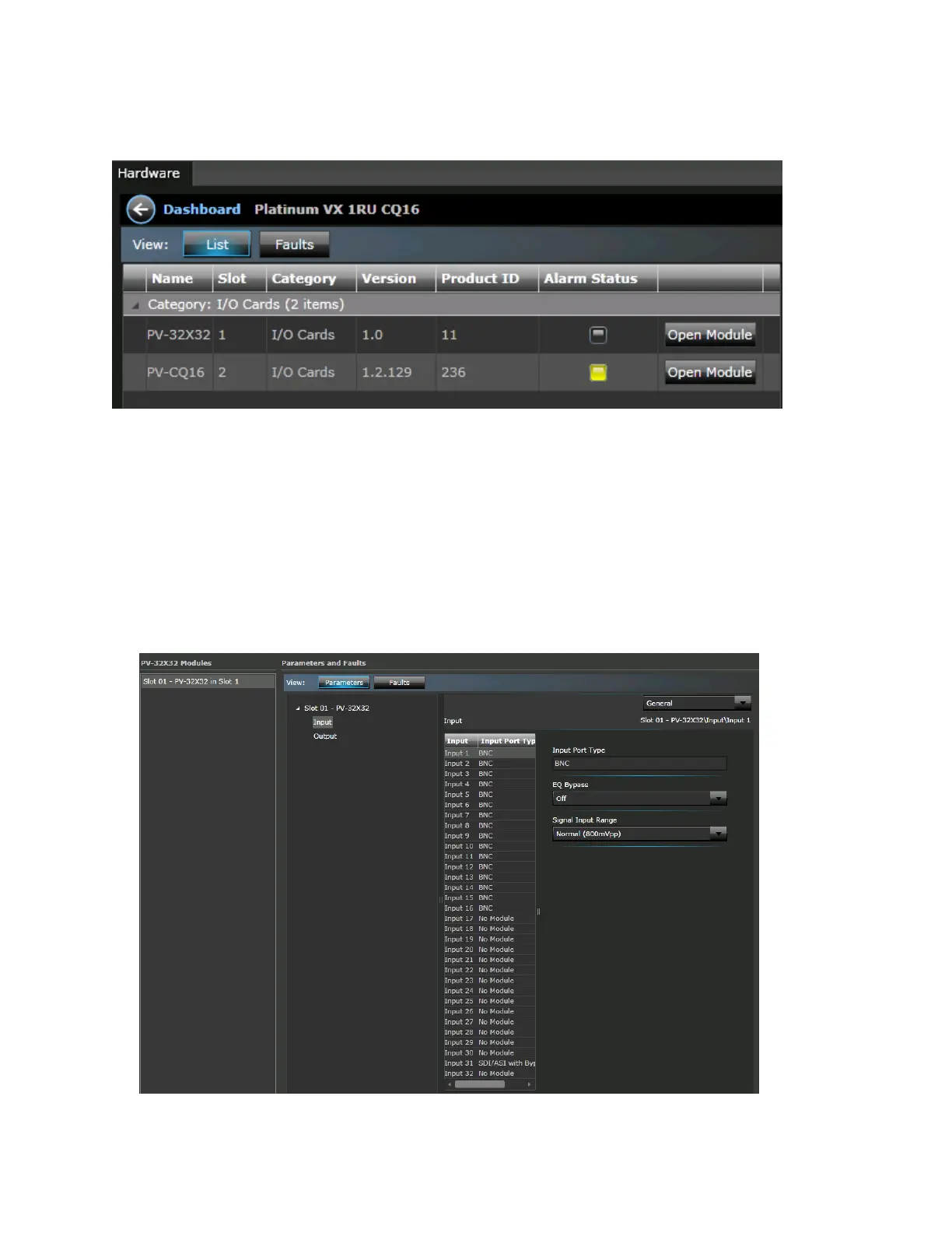 Both the 1 RU and 1 RU CQS frames offer up to 32 inputs and outputs, and parameters for these are