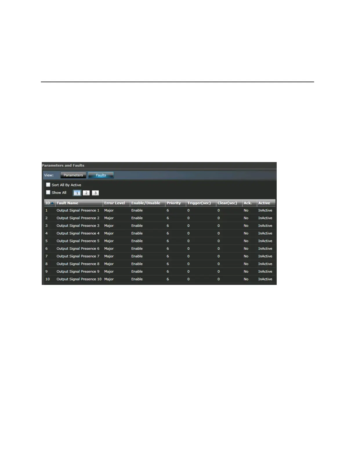Fault Name: The Fault Name, for example, Output Signal Presence