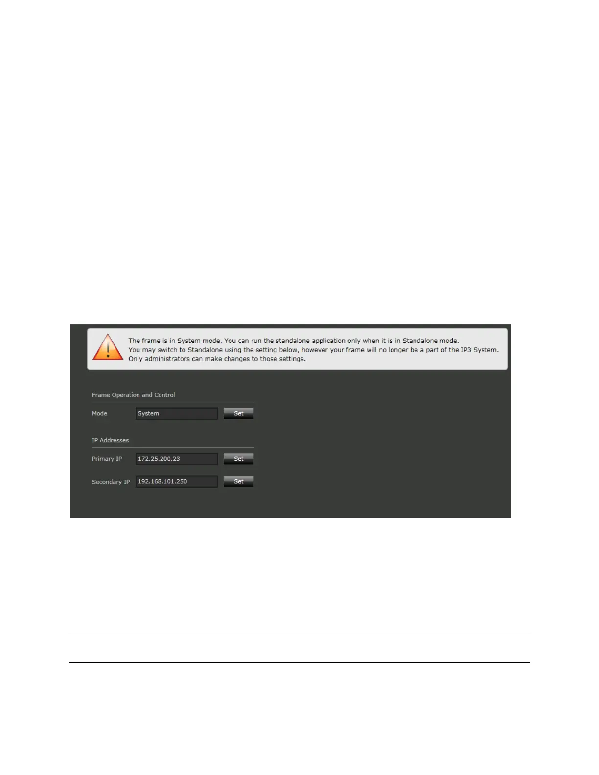 When you set the Frame Operation and Control Mode to System, the system prompts you to refresh the