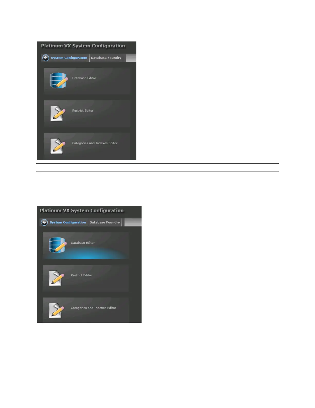 Click the Database Editor button in the Database Foundry view to access the Database Editor.