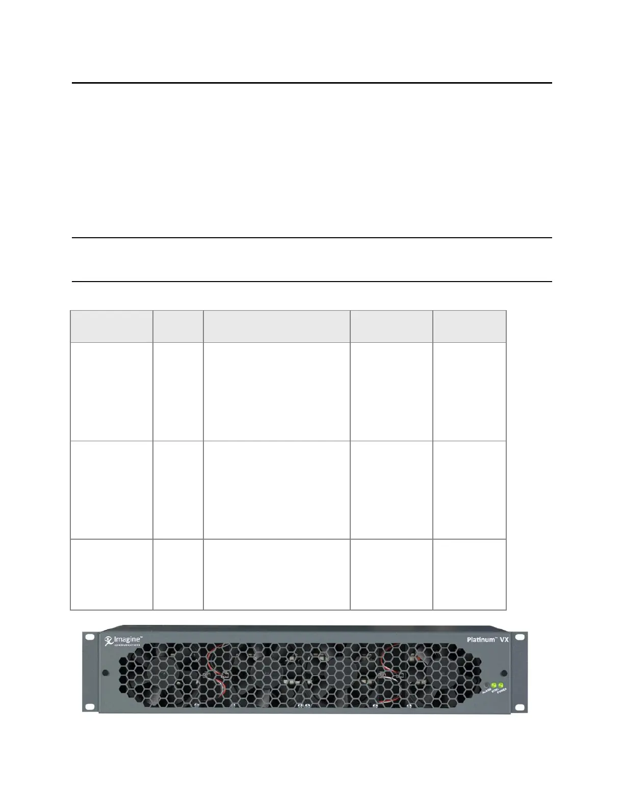 Table 6: 2 RU Platinum VX Frame Modules and Matrix