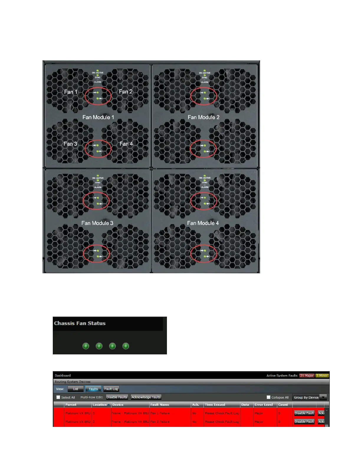 Figure 26: Fan Status LEDs on 4 RU Platinum VX