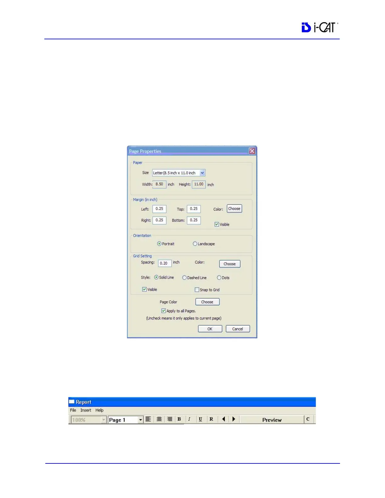text, scroll through pages and preview the report.