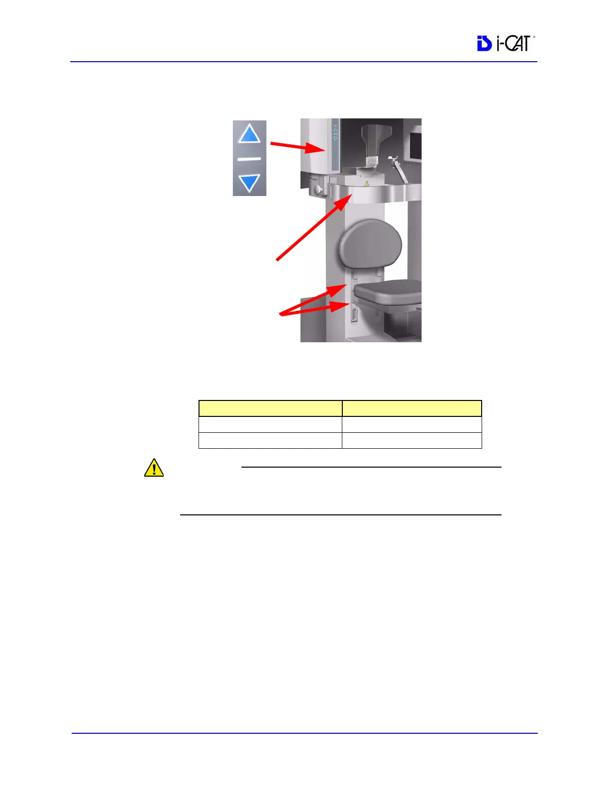 movement of the chair, up (▲) and down (▼), to facilitate Patient