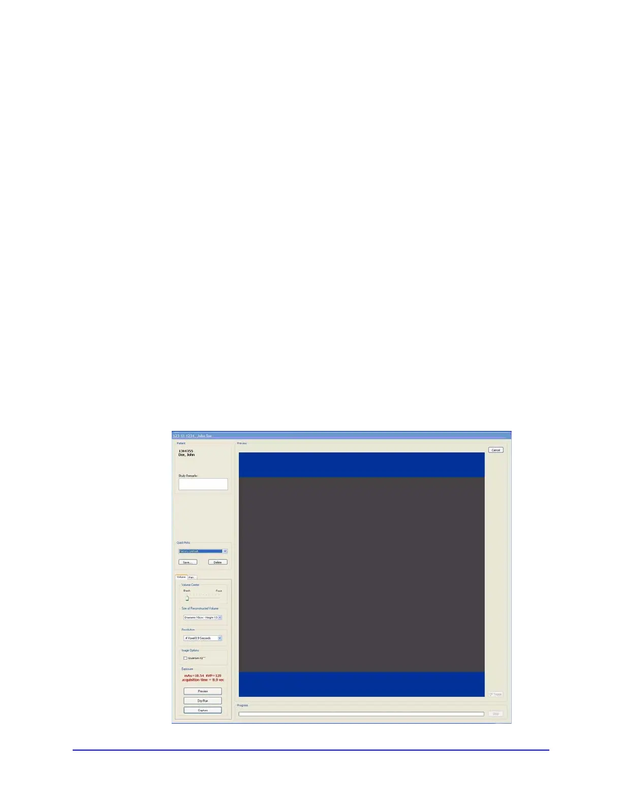 Once Patient data is entered and the Patient is properly positioned,