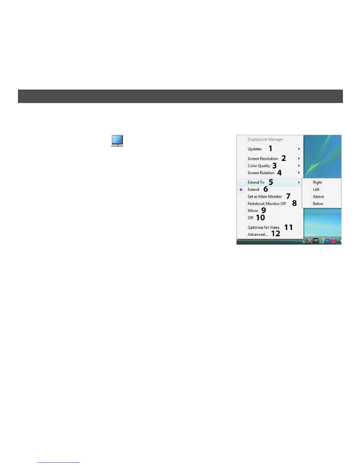 When devices are attached, an icon appears in the taskbar. This gives you access to the DisplayLink