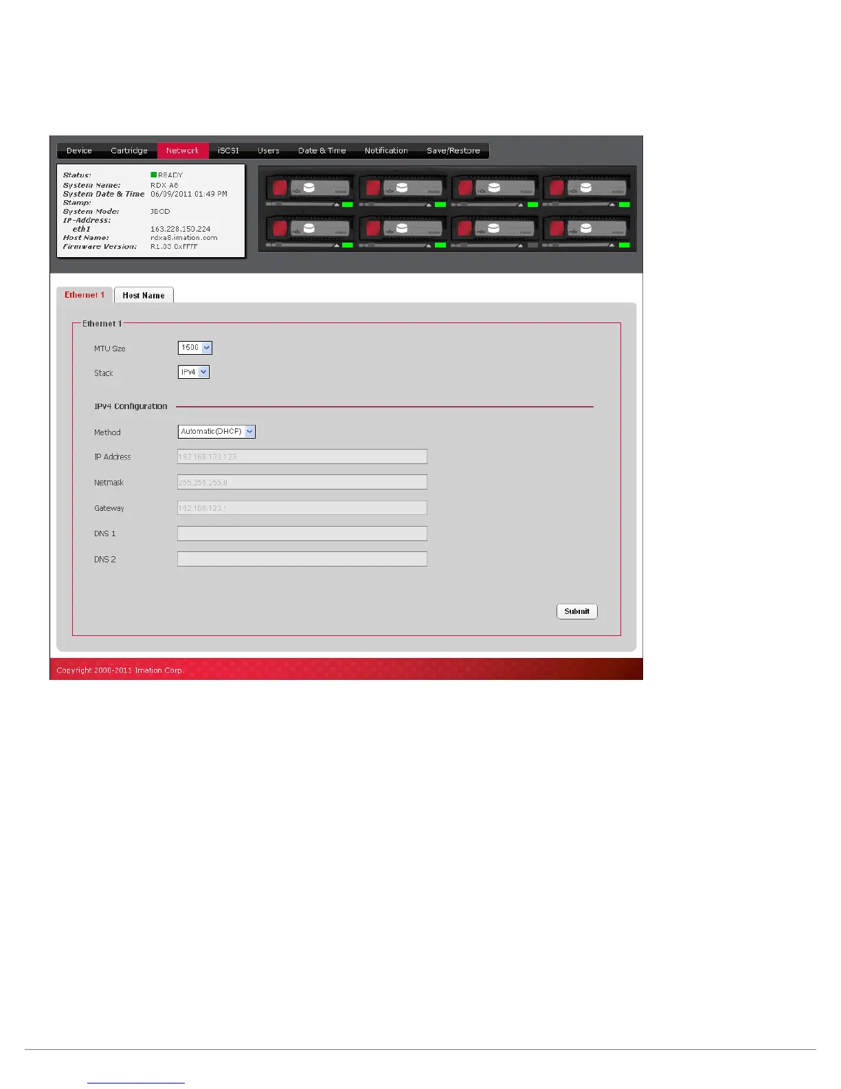 • Manual – The RDX A8 will use the IP address and other network parameters set on this page for