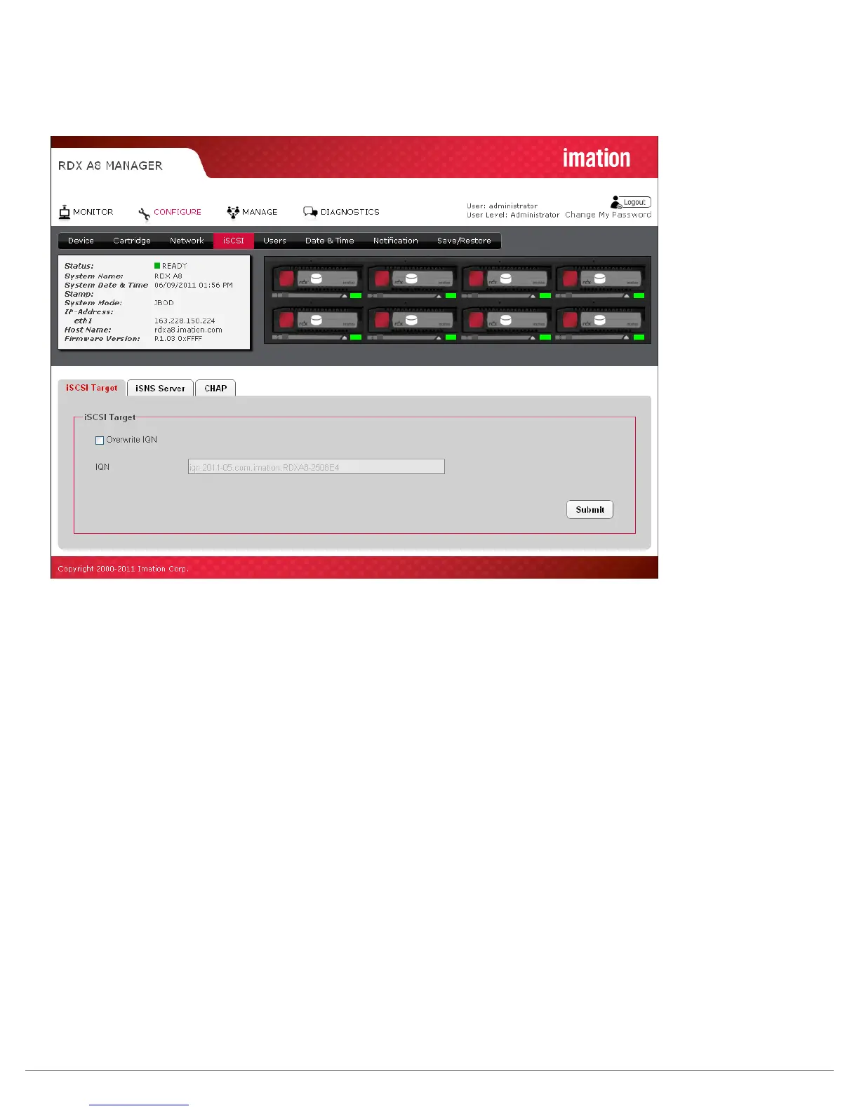 Figure 21—RDX A8 Manager Configure iSCSI Target