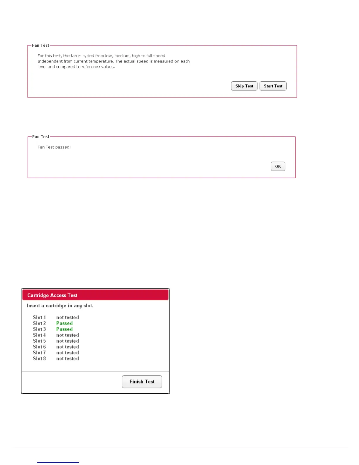 unit will then perform the slot access test and eject the cartridge and provide a pass/fall status.