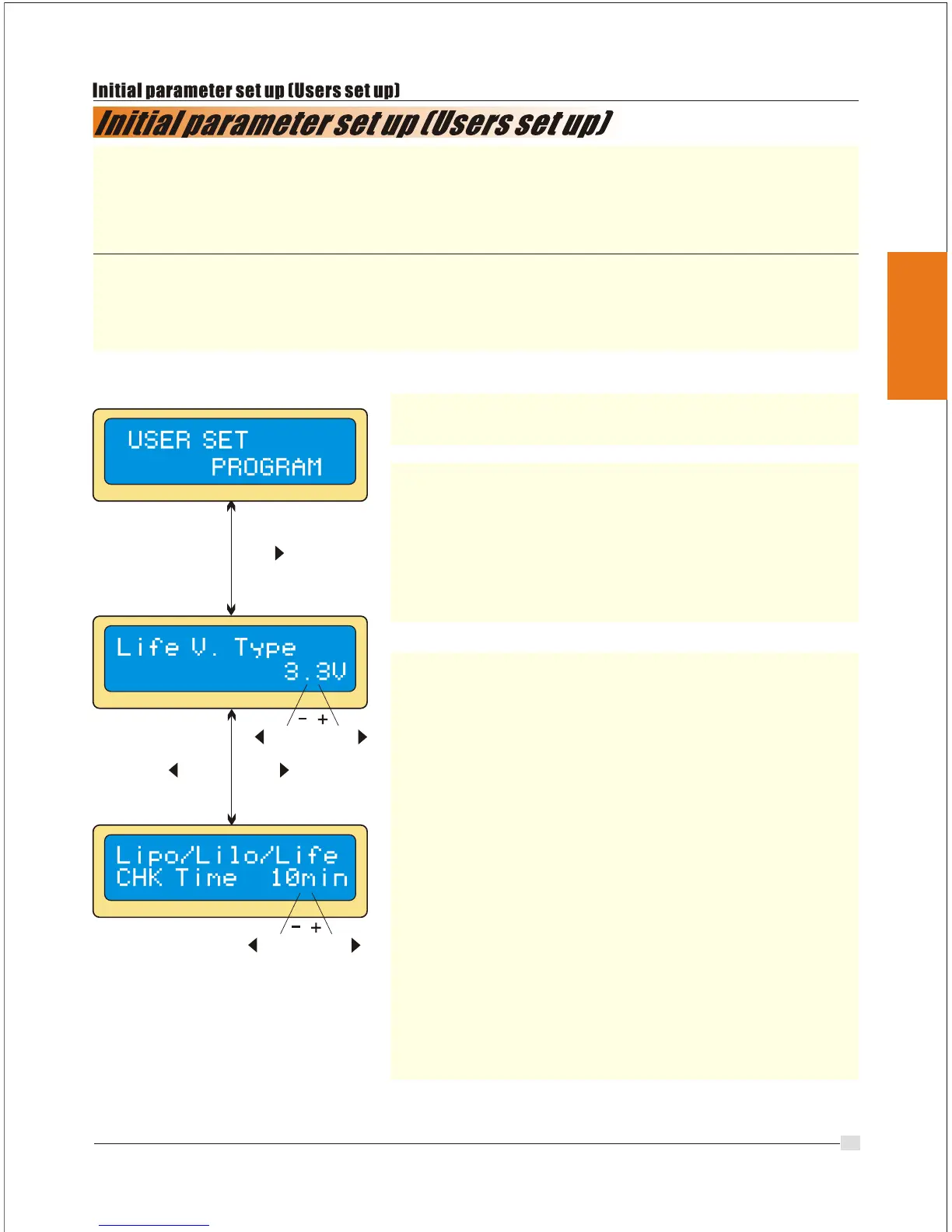 information in sequence and the user can change the value of parameter on each