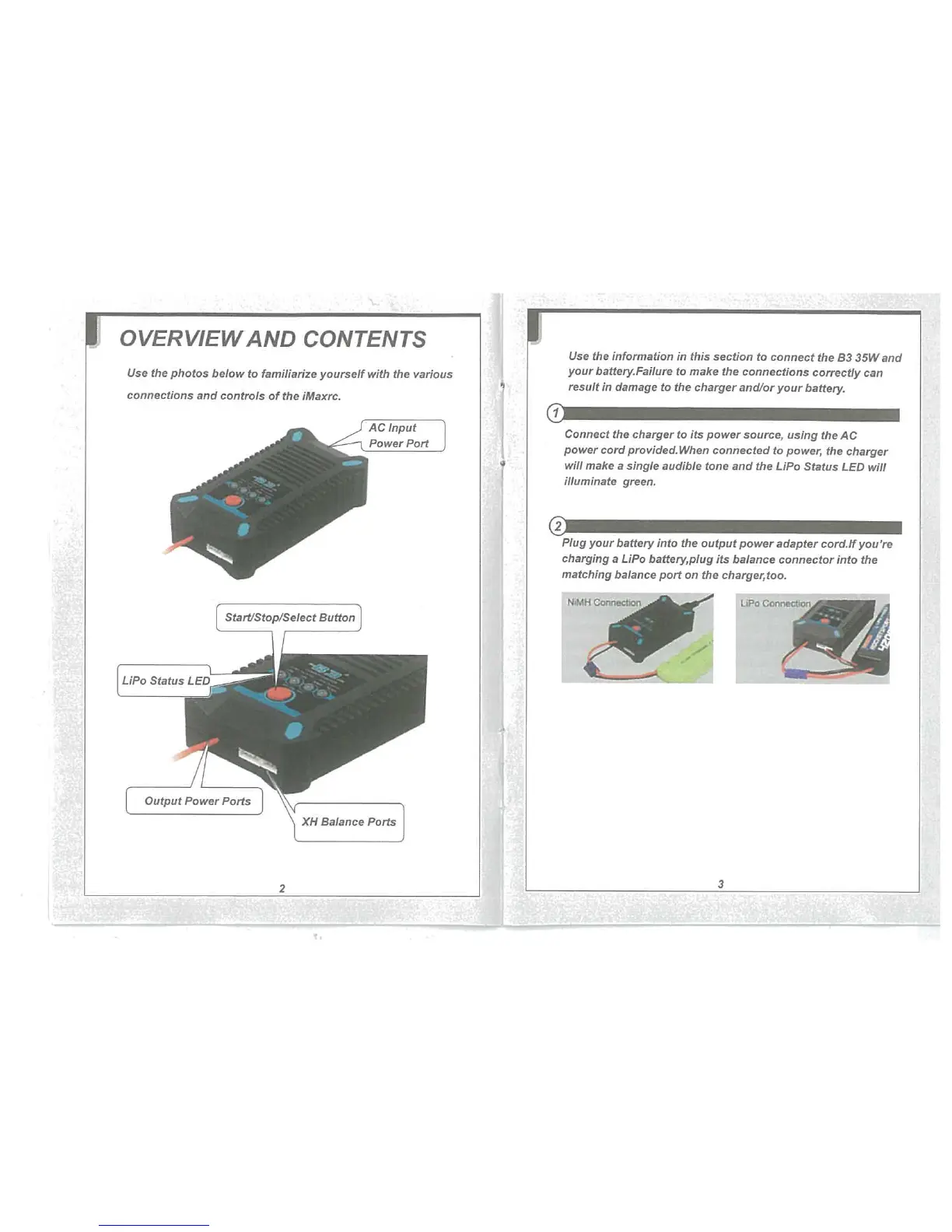 ImaxRC B3 35W - Overview and Contents; Connecting the B3 35 W and your battery
