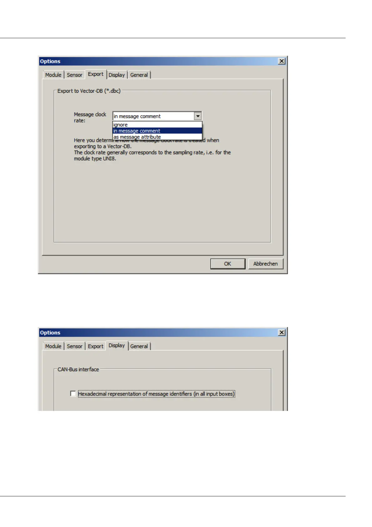 Display: CAN-Bus-Interface: this option box determines whether the message identifiers in all input