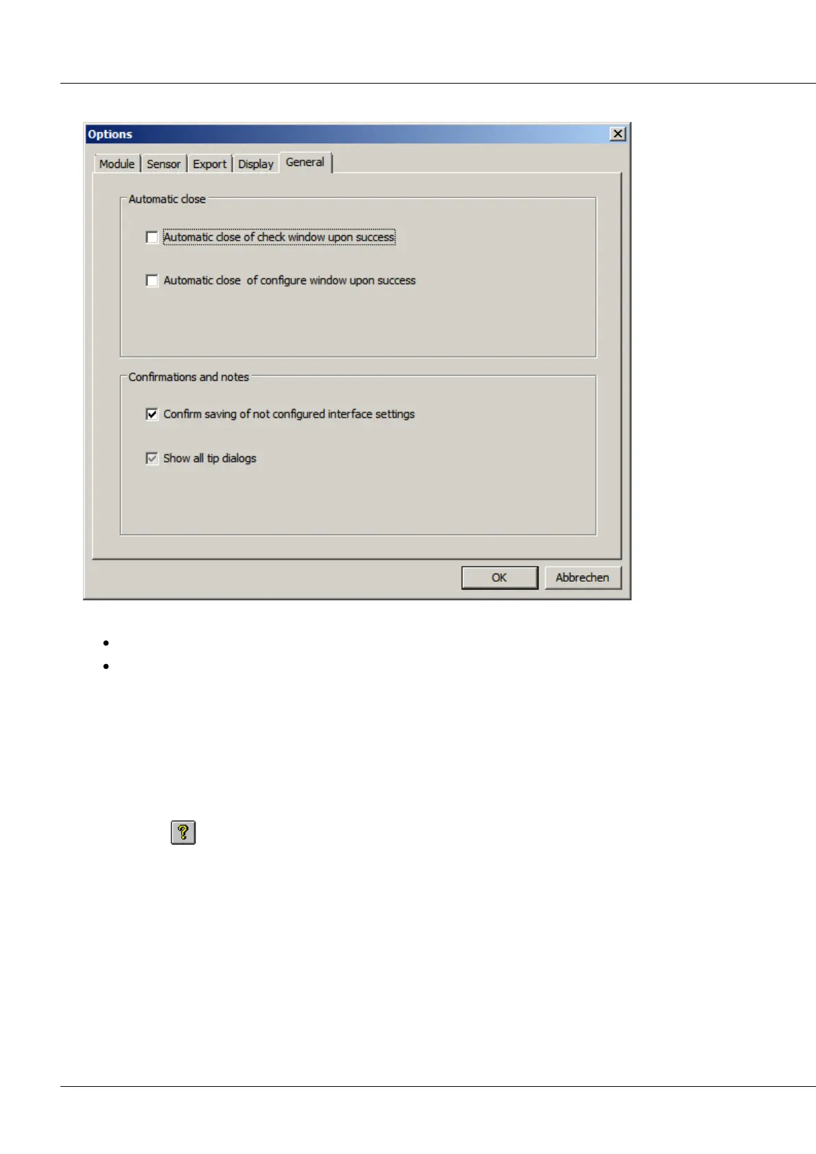 Confirmation: For confirming a save if the interface settings are not configured. Deactivation of