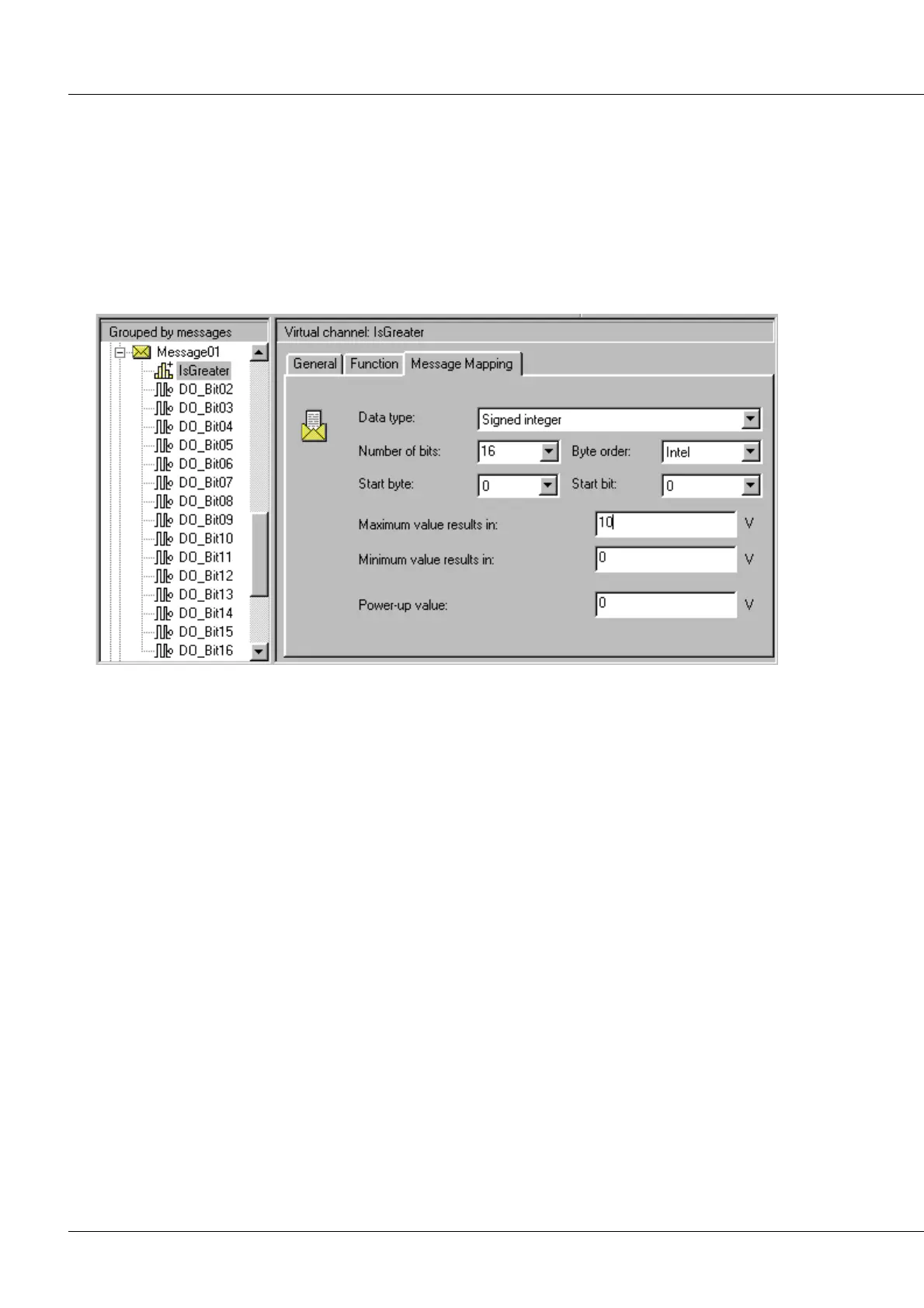 virtual channel was created and was placed in the message. This virtual channel is called "IsGreater". It