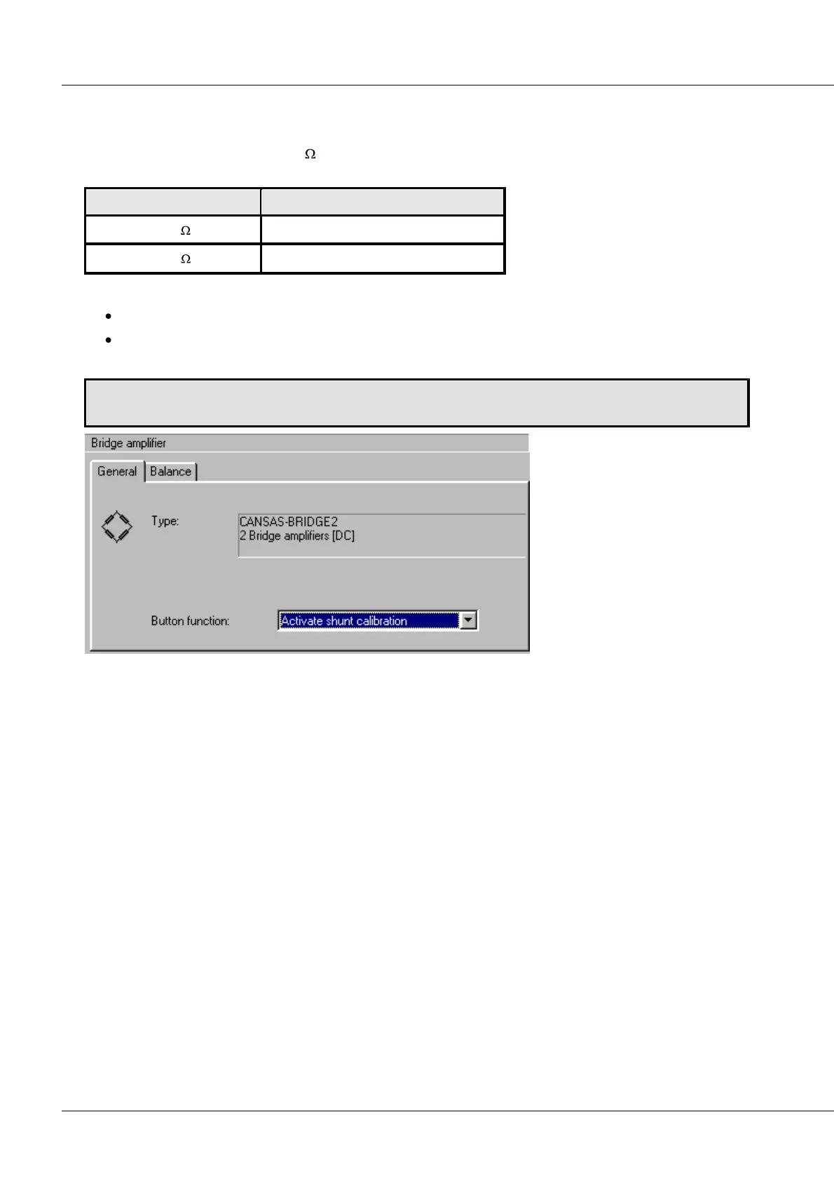 Bridge amplifier -> Index card “General” -> “Button function”: “Activate shunt calibration”