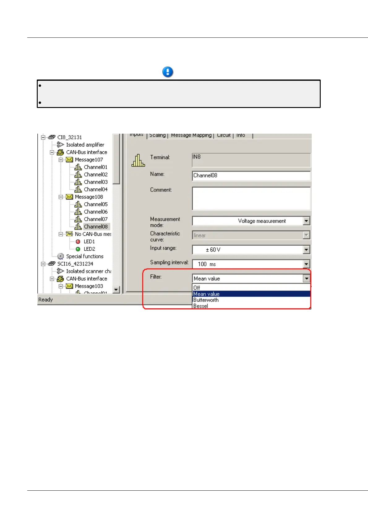 With imc CANSAS-CI8, the filter settings can be made for each channel separately.