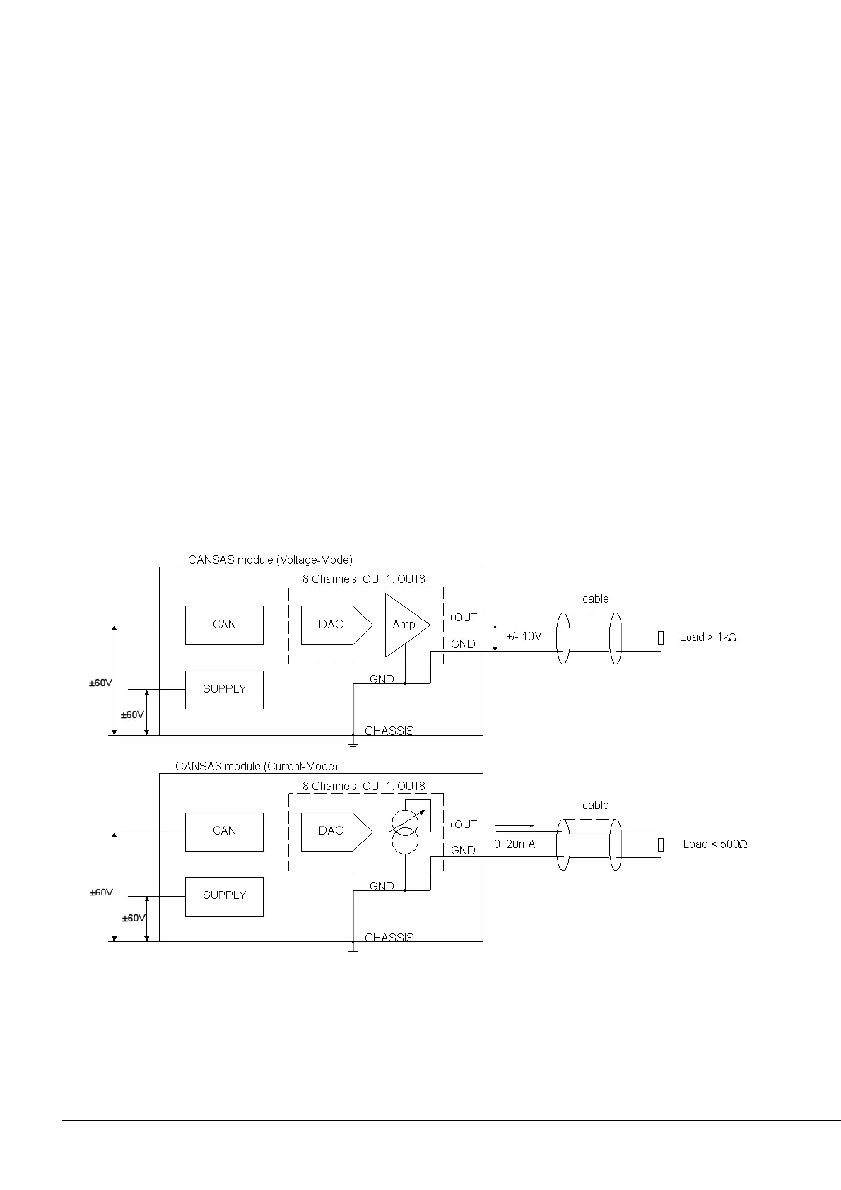 The imc CANSAS-DAC8 module's outputs can be configured either as voltage or current sources. The