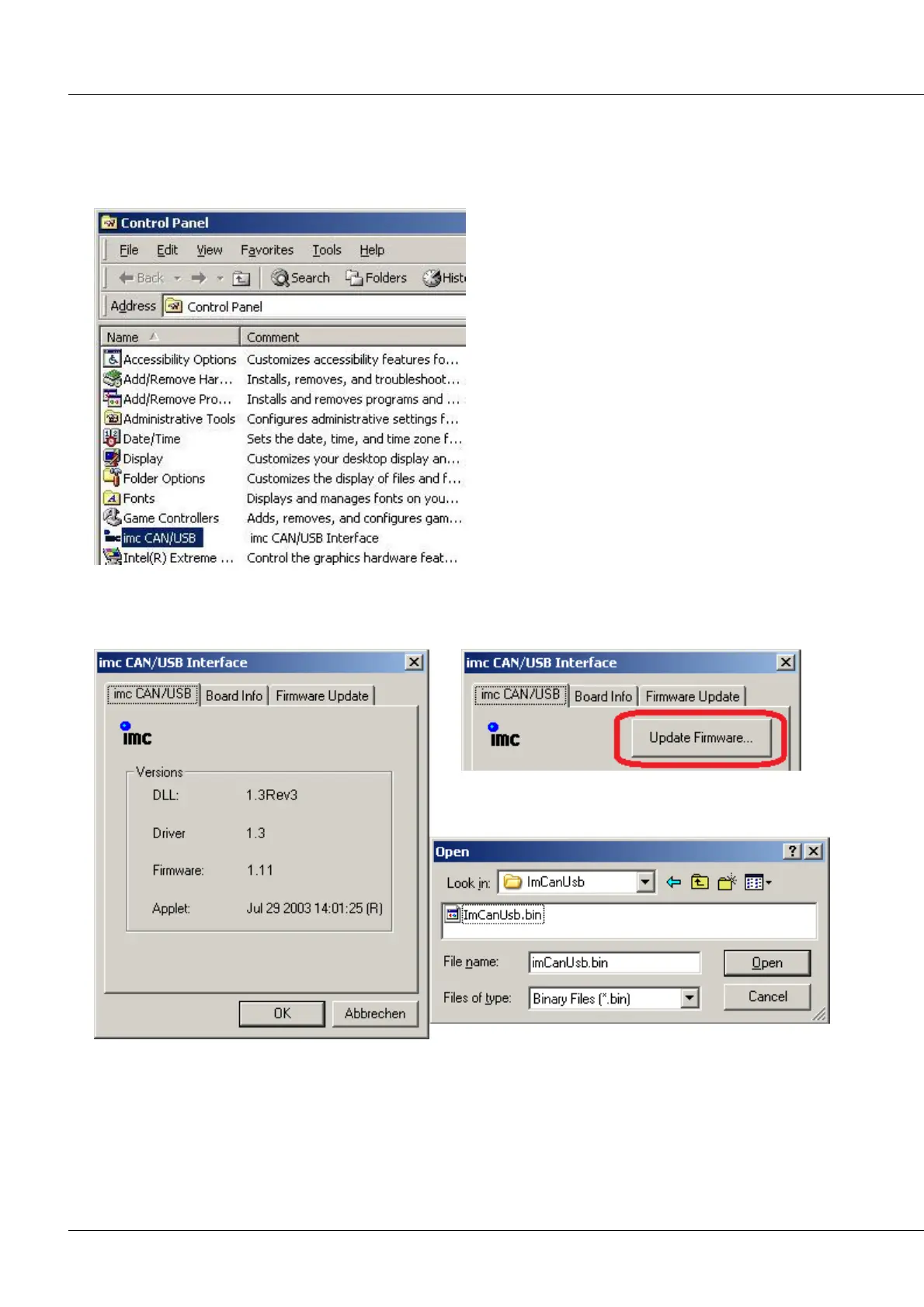 installation-CD for the configuration software under /Driver/Imc/imCanUsb/imCanUsb.bin.