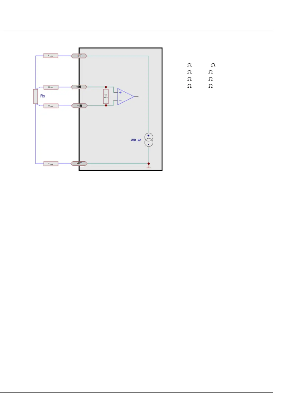 the connection to the resistor at +IN is broken, the indicated value is the input range end value.