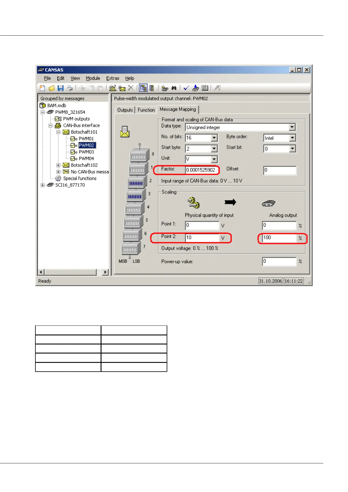 The scaling of the duty cycle ratio has to be entered on the Message Mapping card: