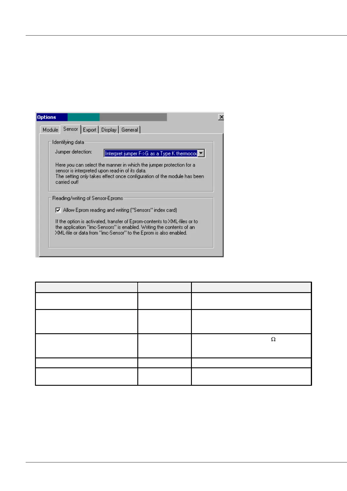 possibility to use wire jumpers to broadly specify the sensor type. However, only a thermocouple of type