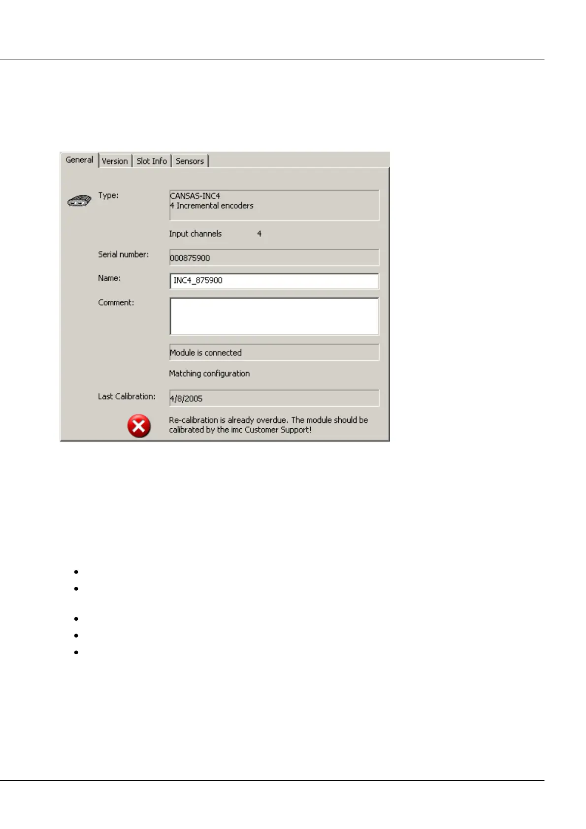 The imc CANSAS module's properties depend on the module type. The following is a description of the