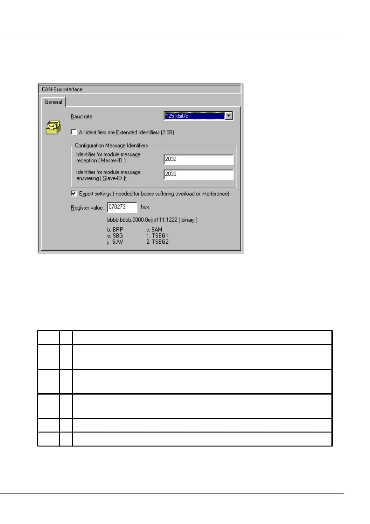 The expert settings are necessary in case of bus overload or interference, or for setting baud rates other