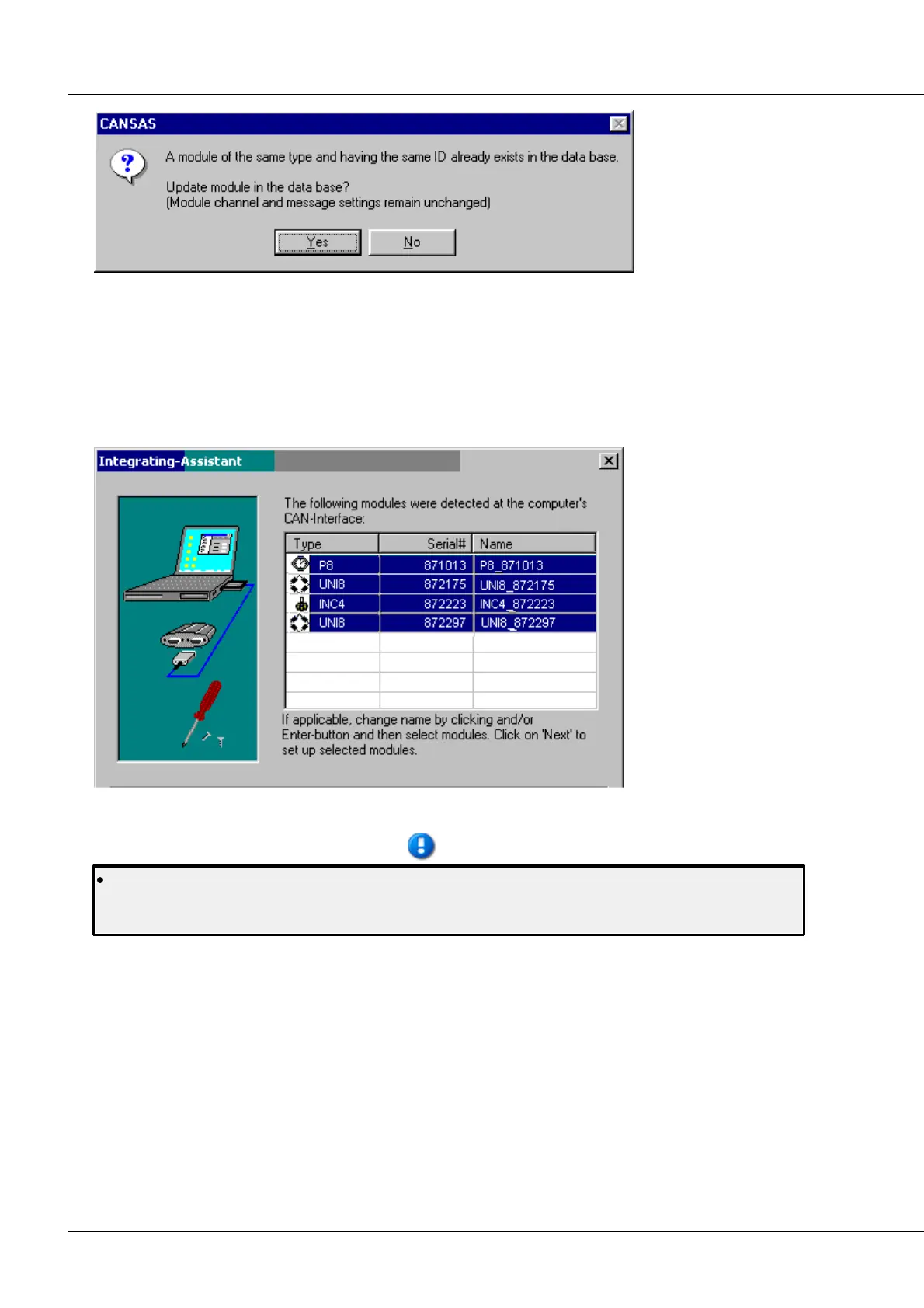 database, the system asks whether the module is to be (completely) overwritten, including the channel