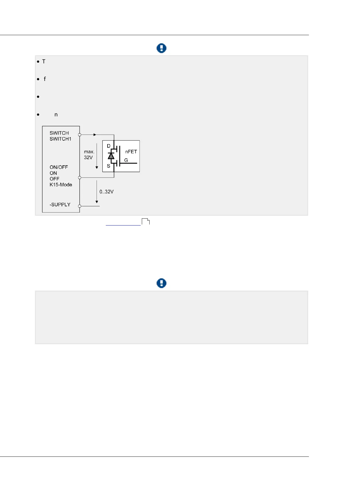 When using electronic switching elements (like FET or bipolar transistors), voltage levels and direction