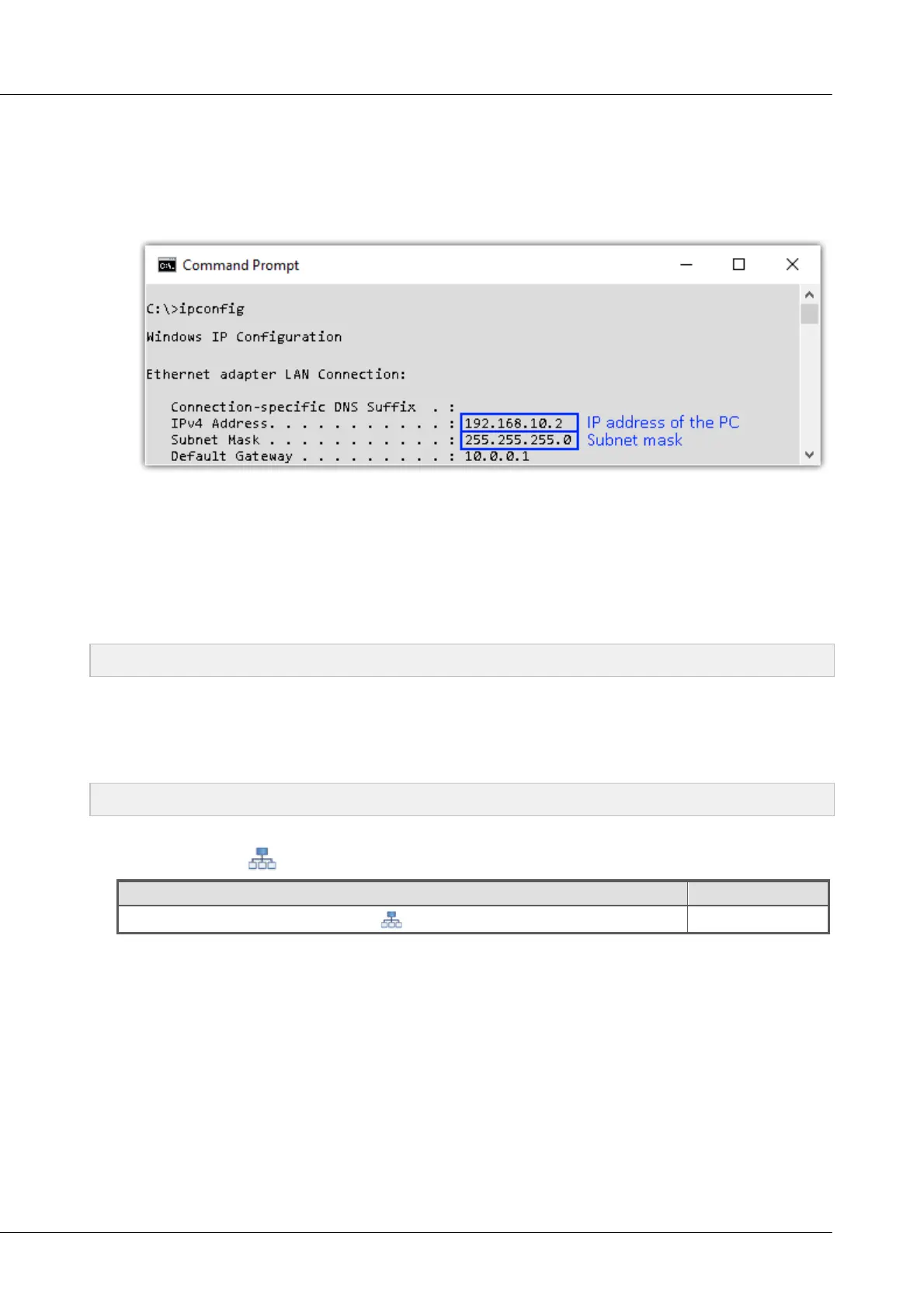 For the present case, the PC uses the IP 192.168.10.2 with the subnet mask 255.255.255.0. For this