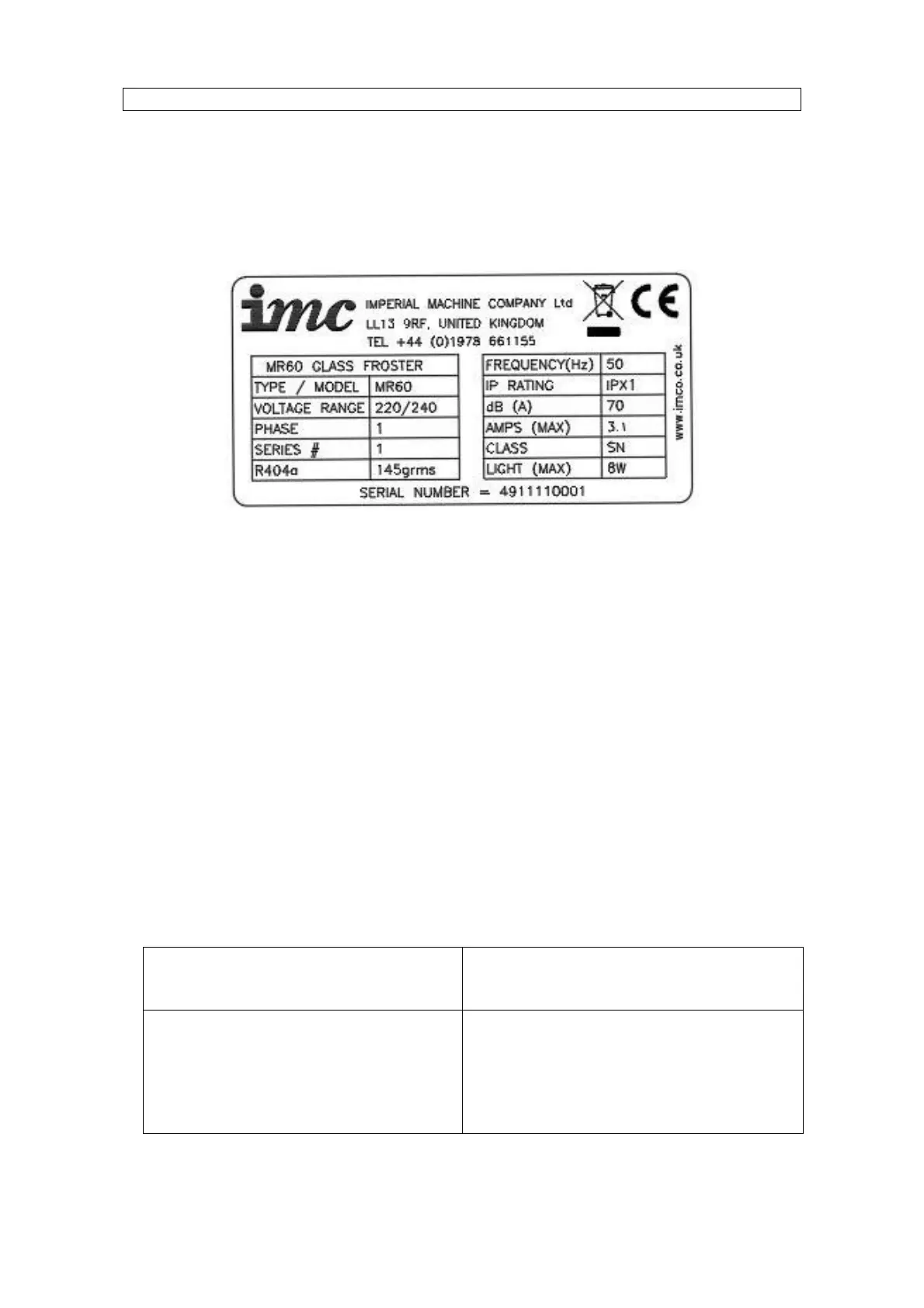 SAMPLE RATING LABEL