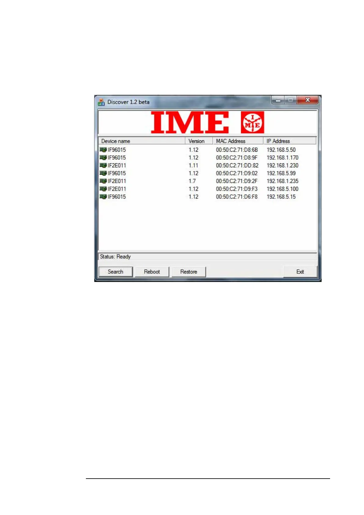 Search : to detect all interfaces in the network (LAN only) and the IP