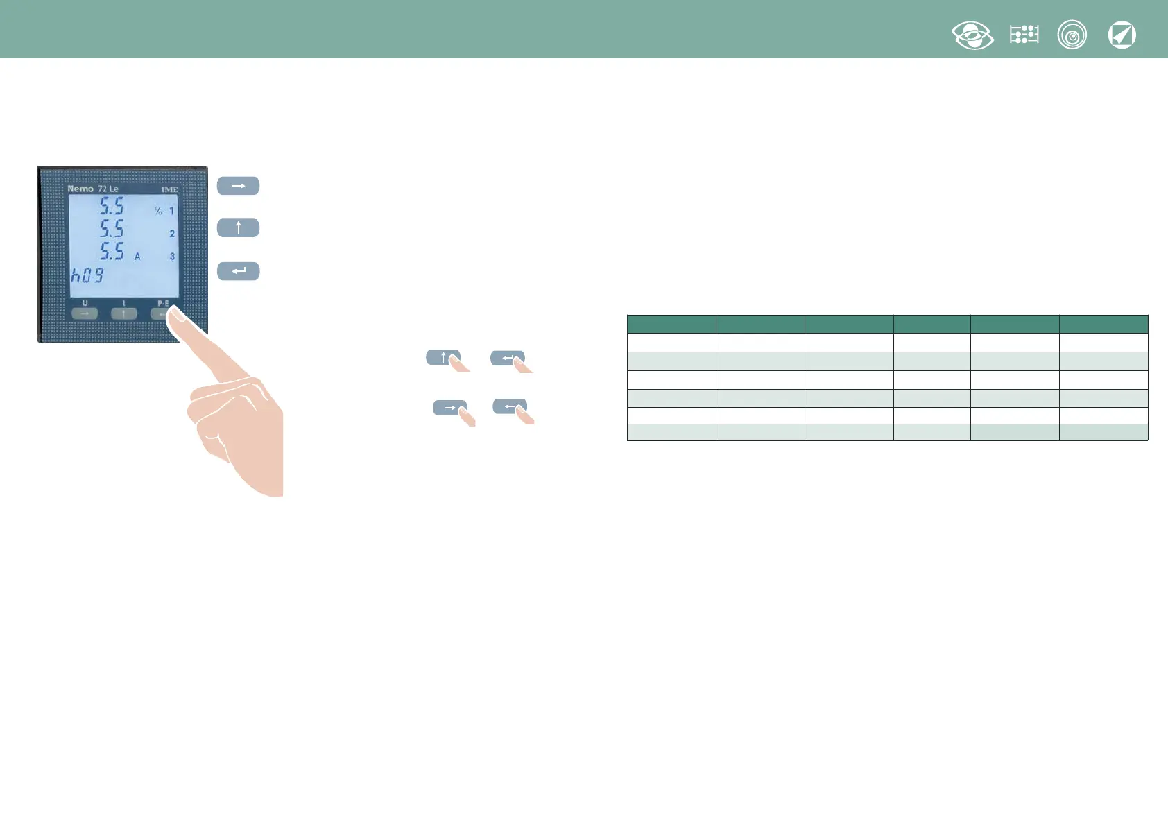 Le grandezze selezionabili per la pagina personalizzata sono riportate nelle tabelle pag.7