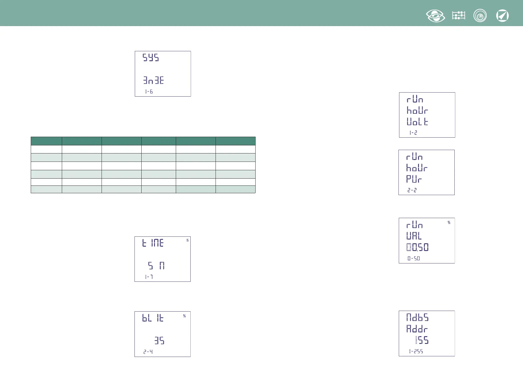 Puissance: puissance active totale, valeur programmable 0,5…50%Pn