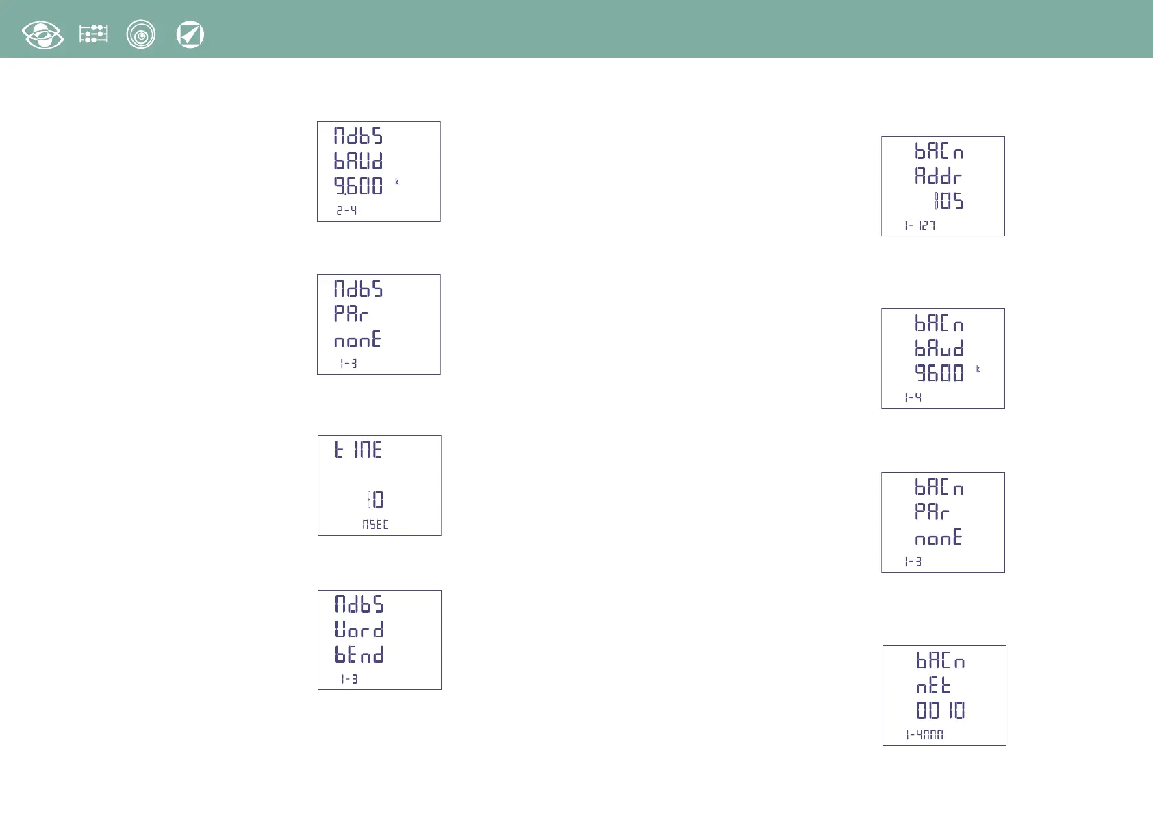 Vitesse de transmission: 4800 – 9600 – 19200 – 38400 bit/s