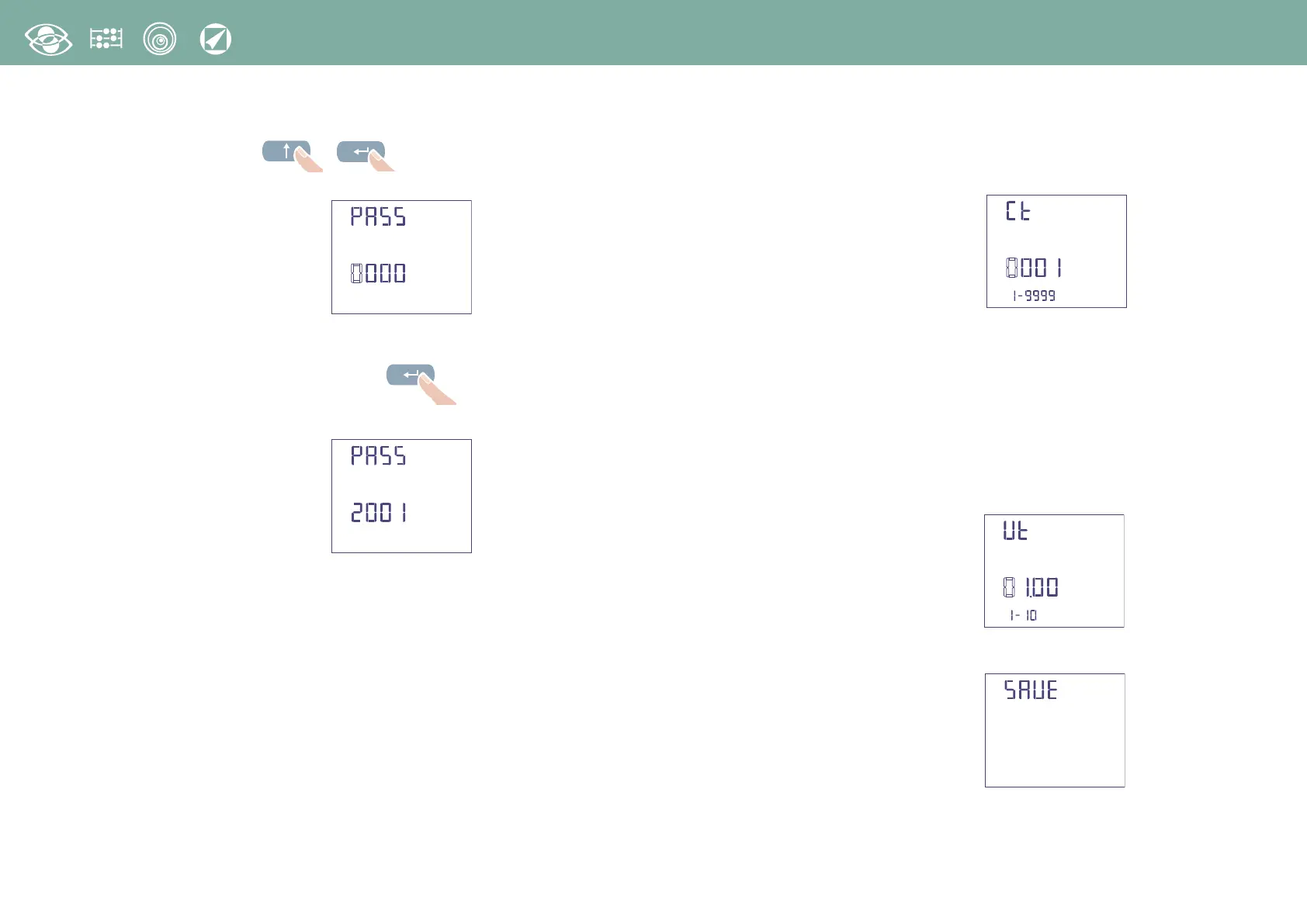 Rapport CT externe (Ct): 1...9999 (massima corrente primaria 50000/5A – 10000/1A)