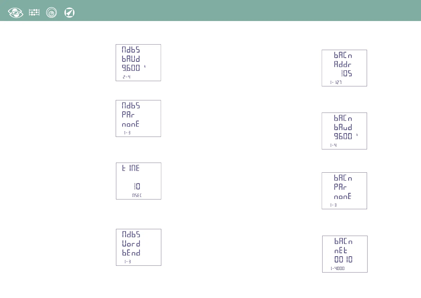 Übertragungsgeschwindigkeit: 4800 – 9600 – 19200 – 38400 bit/Sek.