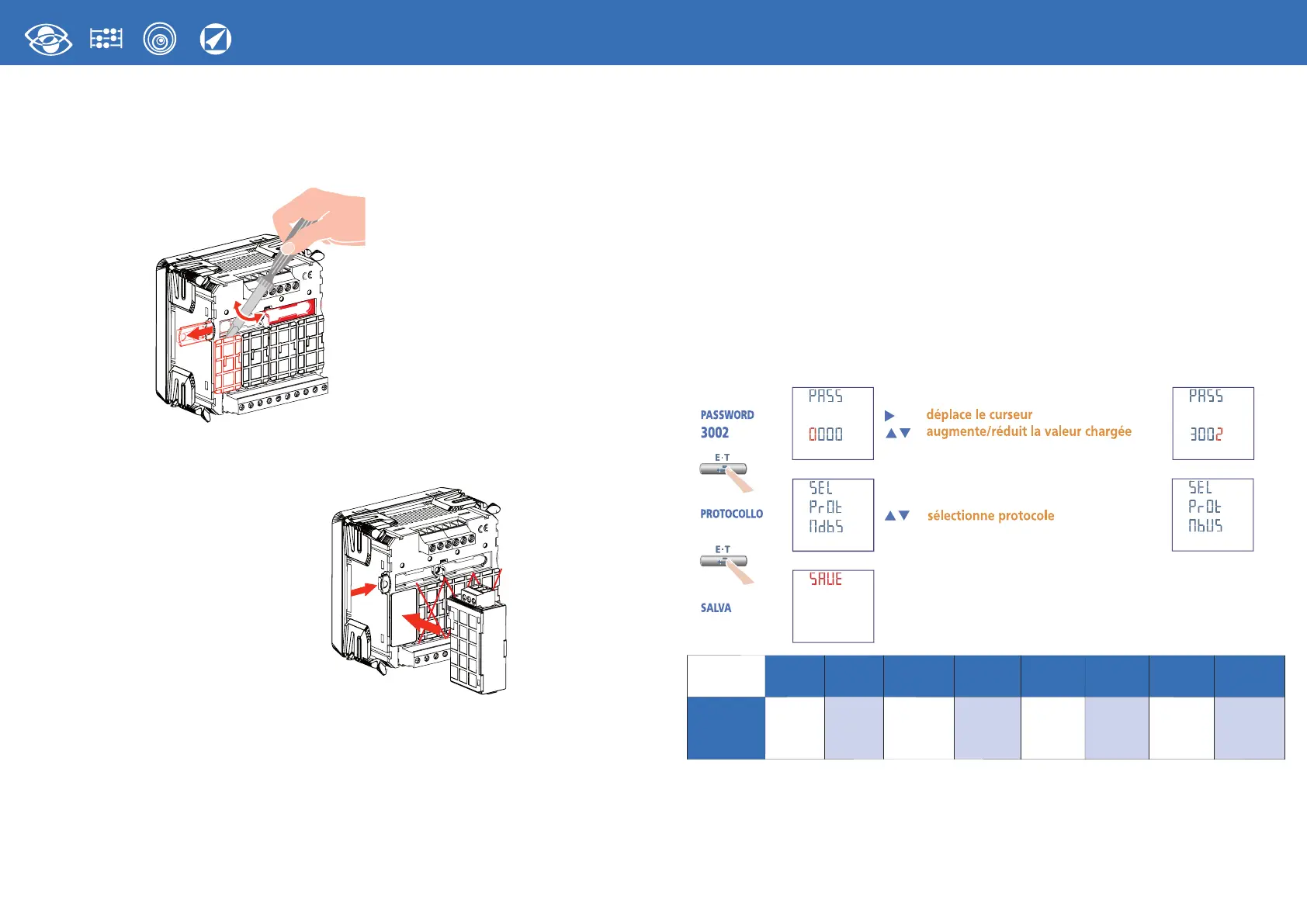 Charger le mot de passe 3002 et sélectionner le protocole de communication