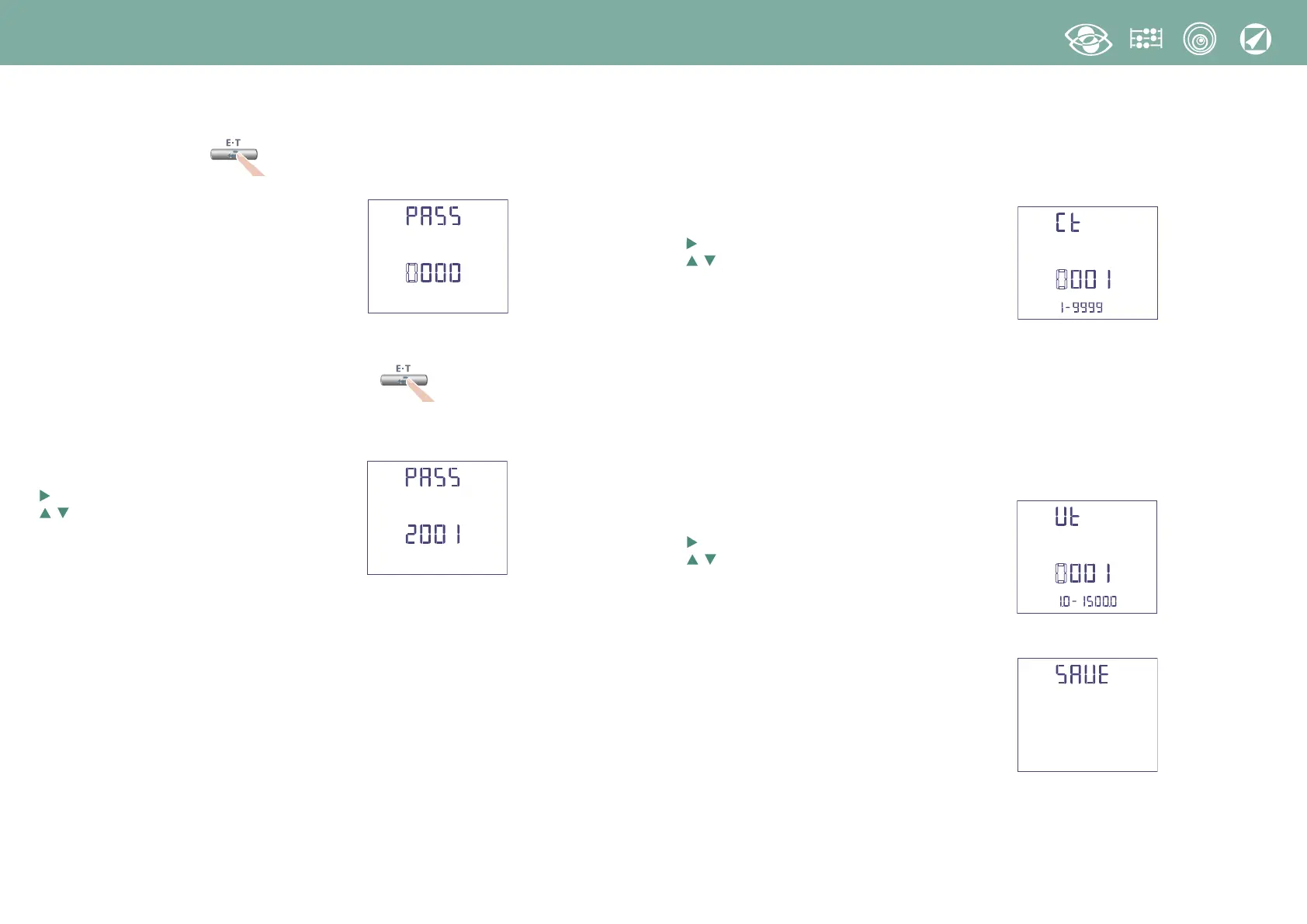 Selection in the field 1...9999 (max. primary current 50kA/5A – 10kA/1A)