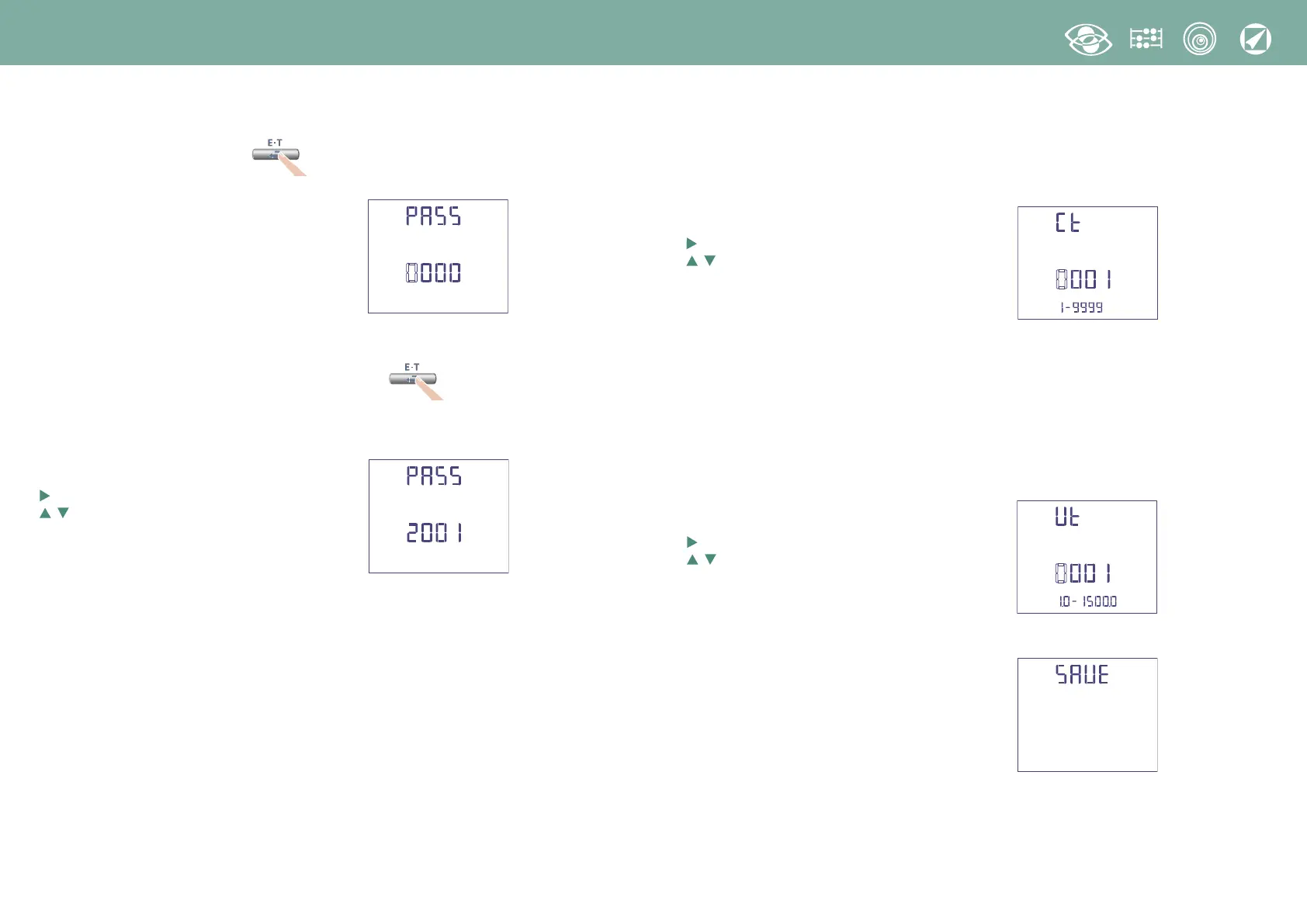 Sélection dans le domaine 1...9999 (max. courant primaire 50kA/5A – 10kA/1A)