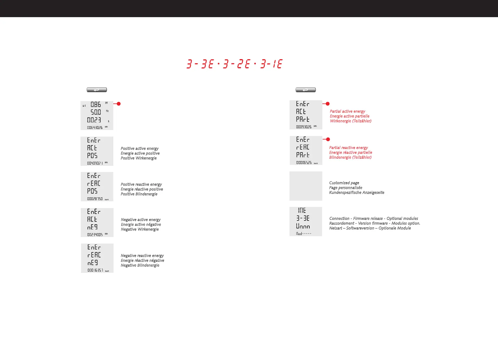 Facteur de puissance - Fréquence - Heures et minutes de fonctionnement – Energie active