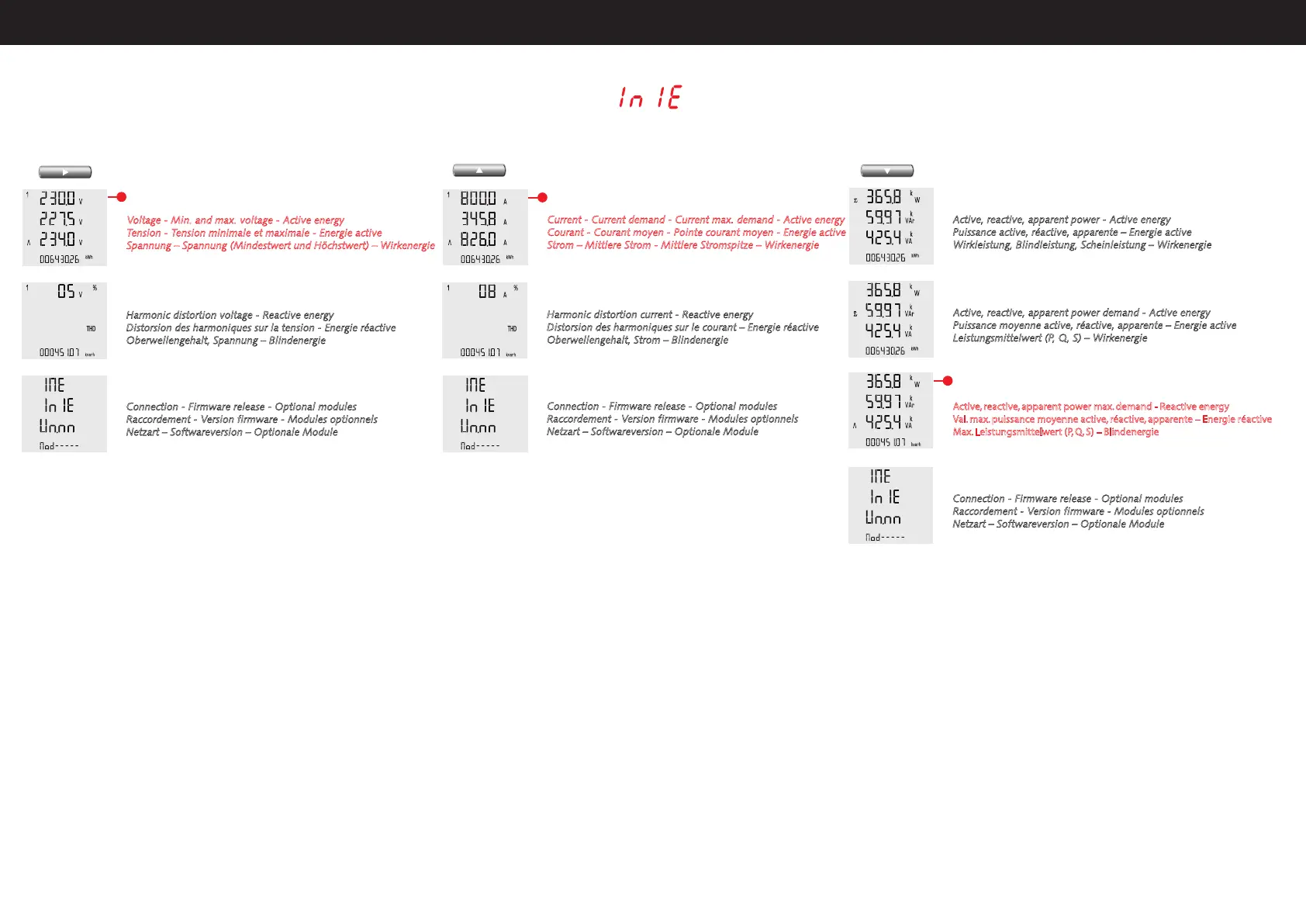 Val. max. puissance moyenne active, réactive, apparente – Energie réactive