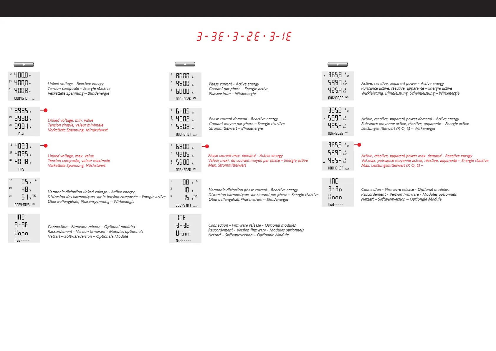 Val.max. puissance moyenne active, réactive, apparente – Energie réactive