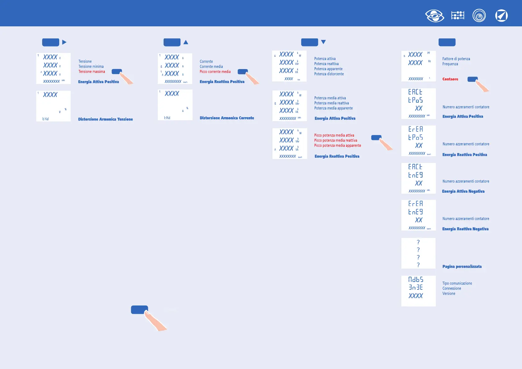 Tenendo premuto il tasto per 5 sec. è possibile resettare la pagina di visualizzazione.