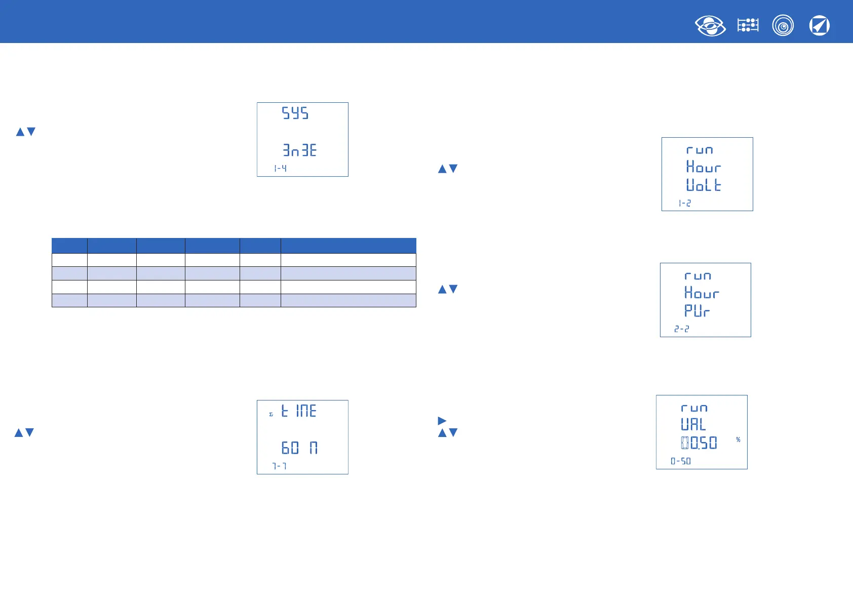 Puissance: puissance active totale, valeur programmable 0,5...50% Pn (puissance nominale)